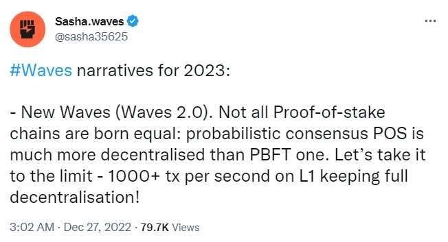 2023 年 1 月,Shasha 在 Twitter 上發(fā)布了有關(guān) Waves 2.0 Litepair、空投和新的代幣橋的消息。
