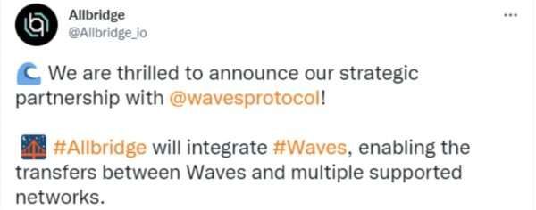 Wave 開發(fā)更新、Wave 2.0 以及與 Allbridge(一種促進不同區(qū)塊鏈網(wǎng)絡(luò)之間資產(chǎn)轉(zhuǎn)移的協(xié)議)合作的消息等利好消息也推高了價格。