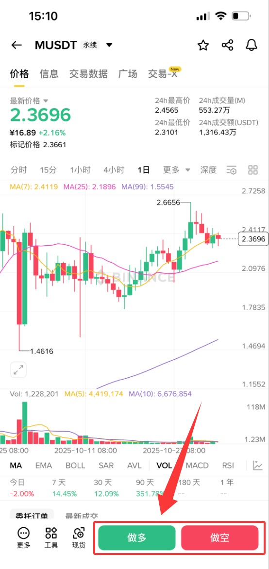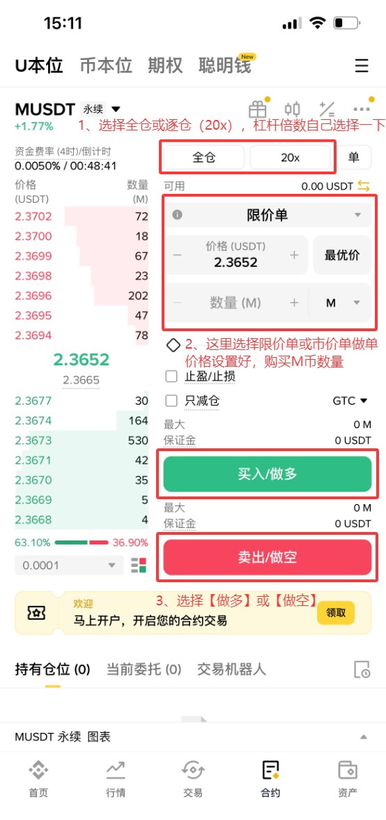 幣安提供M永續(xù)合約交易對,MUSDT合約杠桿為1-50。