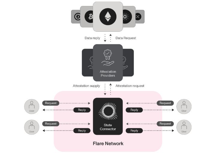 State Connector 協(xié)議能夠通過(guò) Flare 的智能合約,安全且可擴(kuò)展地使用來(lái)自其他區(qū)塊鏈和互聯(lián)網(wǎng)的信息。