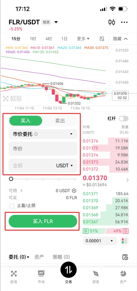 下面將為大家詳解歐易OKX app購(gòu)買(mǎi)FLR幣操作步驟教程。