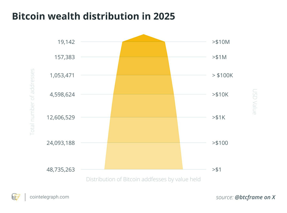 這種區(qū)別很重要,因為原始“富豪榜”地址數(shù)量可能會夸大集中度。像交易所、ETF 托管人和支付處理器這樣的大型服務(wù)機構(gòu)運營著成千上萬個錢包,而標記的集群有助于將這些機構(gòu)與終端投資者區(qū)分開來。學(xué)術(shù)界和行業(yè)研究長期以來都警告不要僅憑地址數(shù)據(jù)就得出結(jié)論。