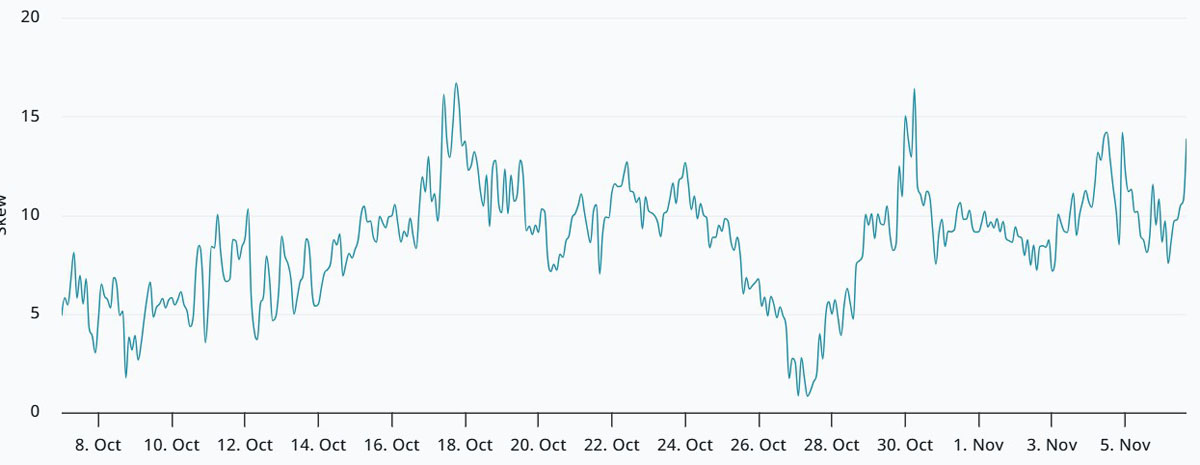 Deribit的BTC兩個月期權(quán)delta偏斜(看跌-看漲)。來源:laevitas.ch