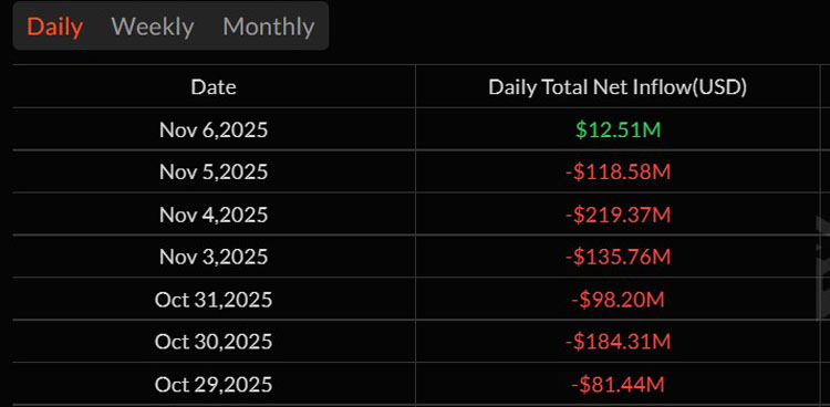 10月29日至11月6日的現貨以太坊ETF數據。來源:SoSoValue