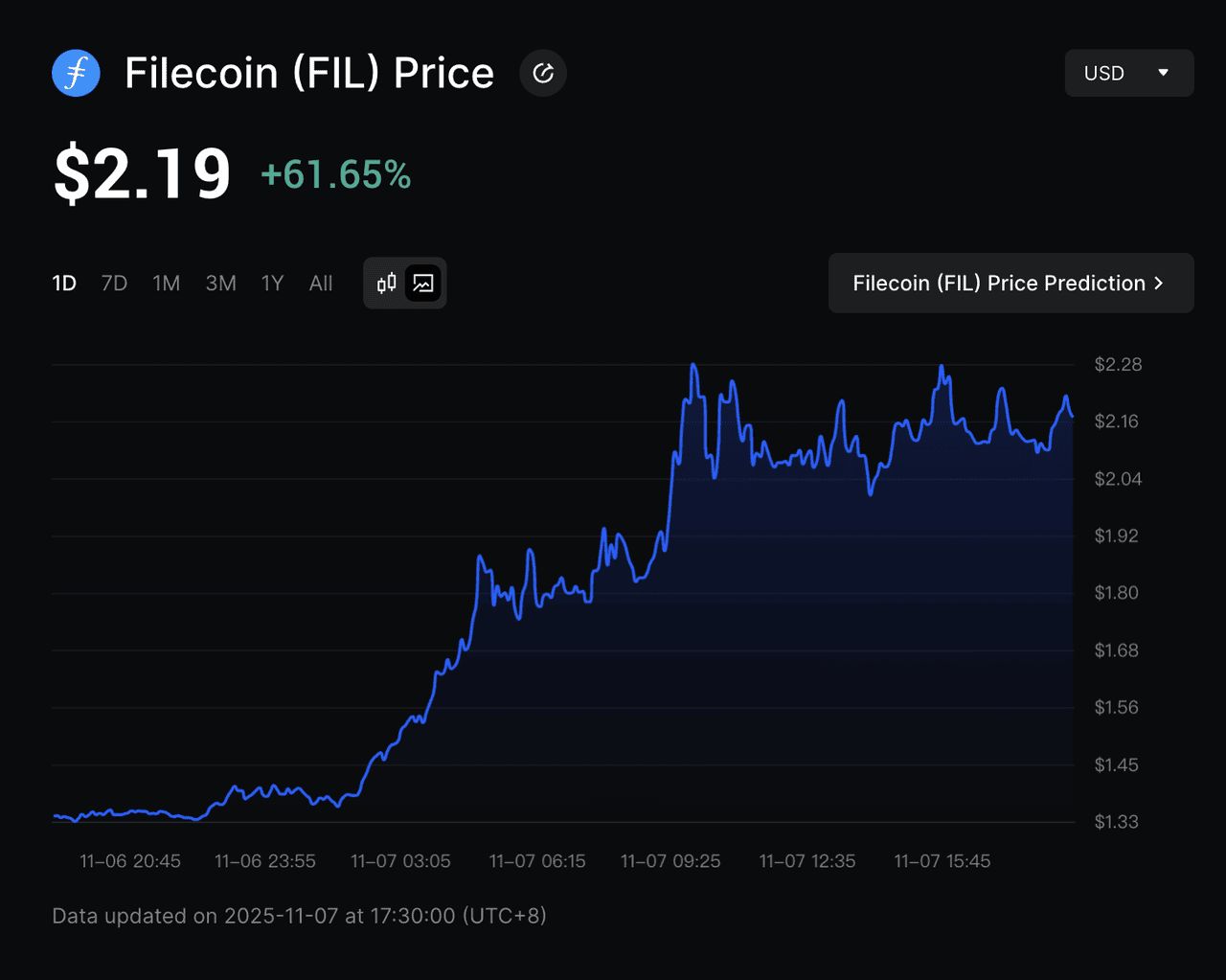 這波投資和市場樂觀情緒正蔓延至去中心化保存領(lǐng)域,這是日益壯大的 DePIN(去中心化實體基礎(chǔ)設(shè)施網(wǎng)絡(luò))敘事的內(nèi)核支柱。Filecoin (FIL)、Arweave (AR) 和 Storj (STORJ) 等代幣在 2025 年 11 月的第一周均大幅上漲,其中 FIL 上漲超過 50%,AR 上漲 60%,STORJ 上漲 20%,因為投資者正尋求反映傳統(tǒng)云端熱潮的區(qū)塊鏈基礎(chǔ)設(shè)施。