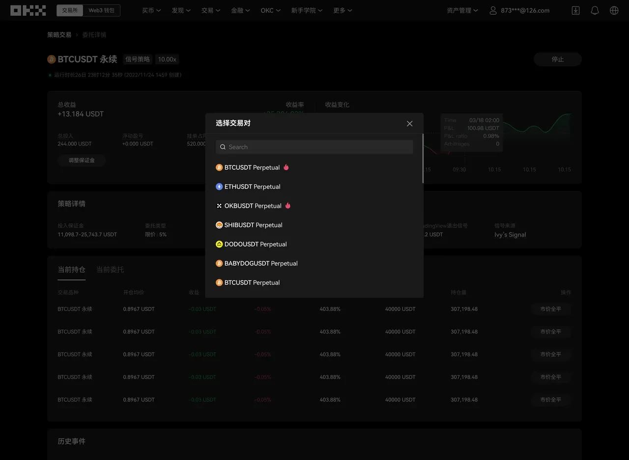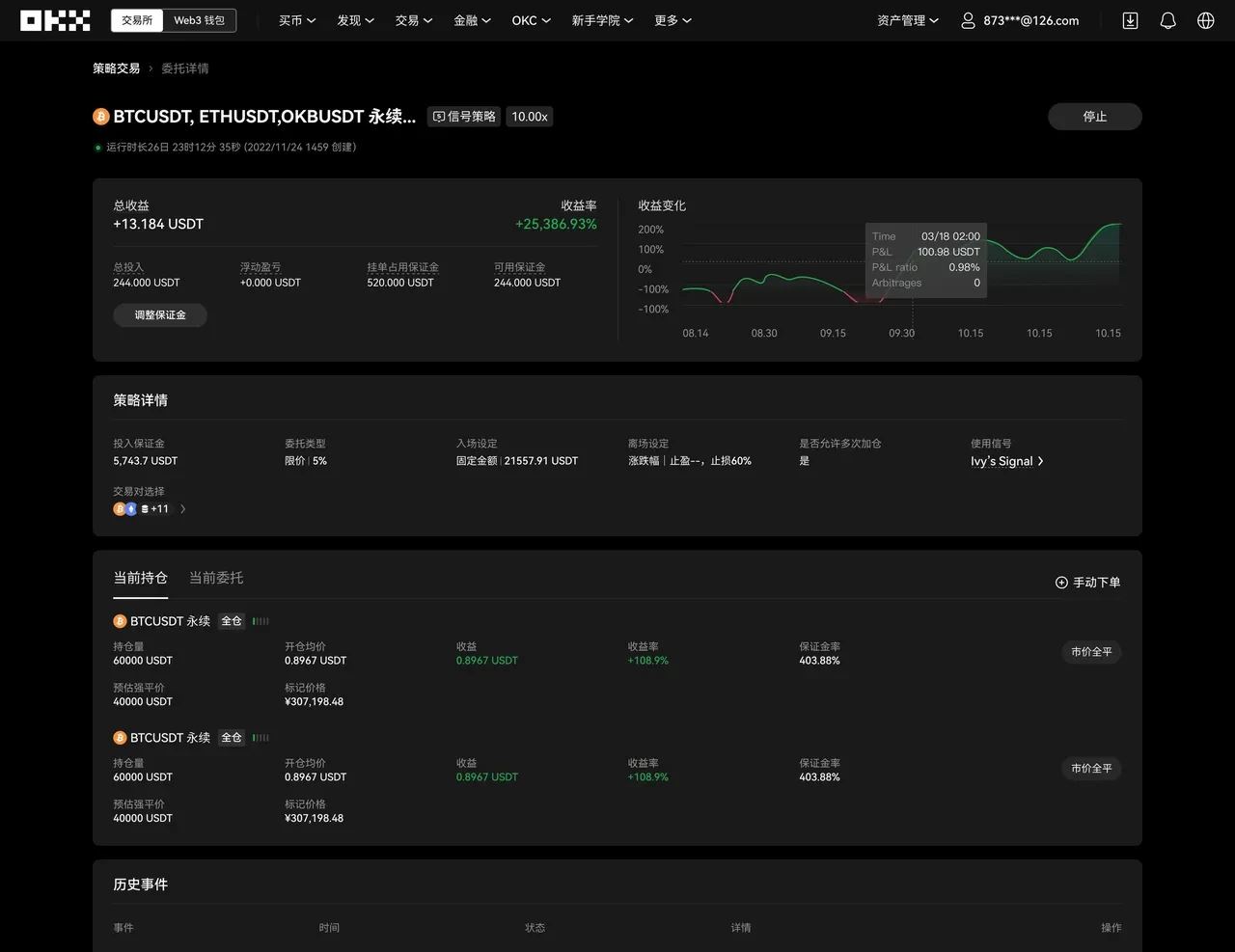 在詳細(xì)信息中,你可以清楚看到信號(hào)策略的歷史交易表現(xiàn),還有正在進(jìn)行的交易,比如有哪些訂單正在等待執(zhí)行等。此外,你還可以查看歷史交易記錄和交易信號(hào)等。