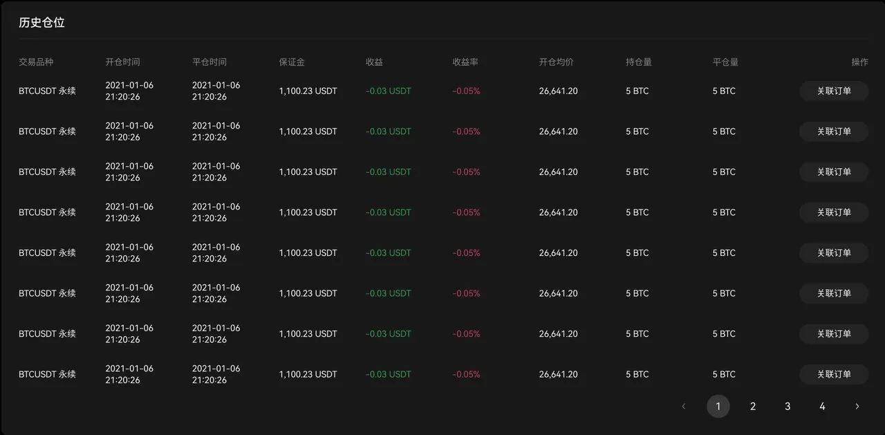 此外,用戶不僅可以方便地查看自己的開放倉位,而且還可以通過點(diǎn)擊“市價(jià)全平”按鈕,直接平掉任何特定交易對(duì)上的開放倉位。選擇“市價(jià)全平”后,用戶可以按照當(dāng)前市場(chǎng)價(jià)格完全平掉該交易對(duì)的倉位。