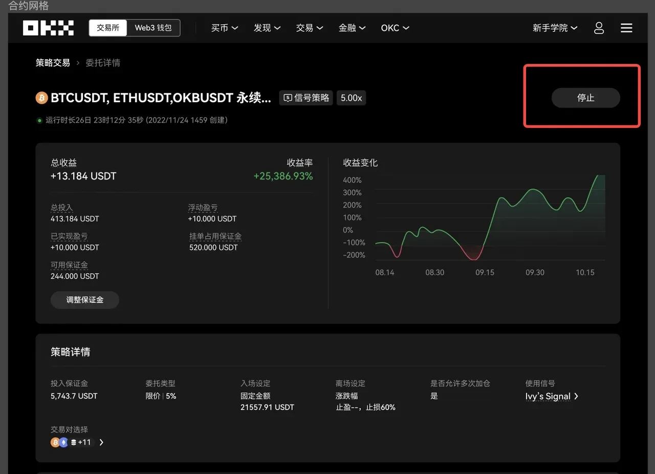 在“調(diào)整保證金”部分,您可以根據(jù)需要輕松添加或刪除策略保證金。這使你能夠在需要時(shí)向策略注入額外資金,或者在投資回報(bào)(ROI)達(dá)到顯著水平后將一部分資金留出來。