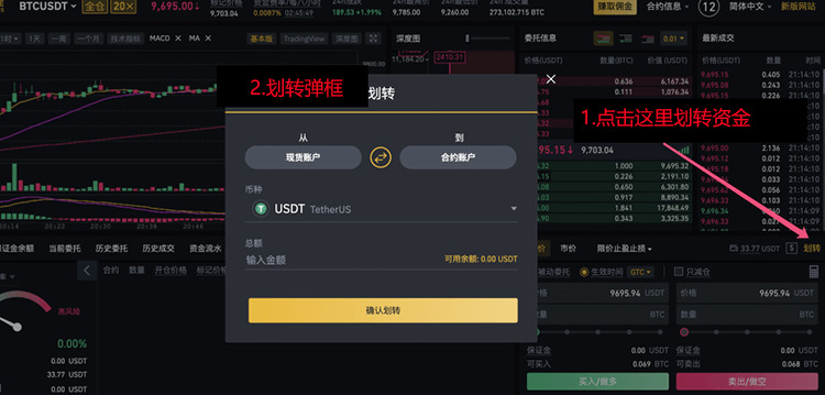 要將資金轉(zhuǎn)移到您的合約錢包中,請(qǐng)單擊“幣安合約”頁(yè)面右下角的“劃轉(zhuǎn)”。設(shè)置您要轉(zhuǎn)賬的金額,然后單擊確認(rèn)轉(zhuǎn)賬。您很快就能看到賬戶余額已添加至合約錢包中。