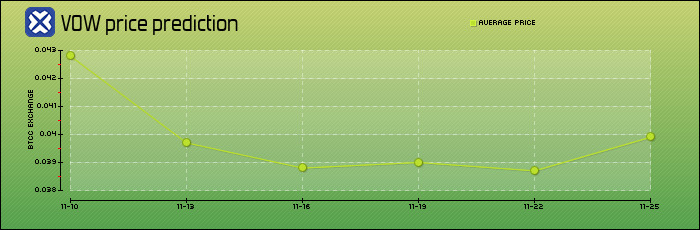 根據(jù)我們的技術(shù)指標(biāo),VOW Token 預(yù)計(jì)將于 11 月 25 日達(dá)到 0.0399 美元,價(jià)格變動(dòng)為 -6.79%。