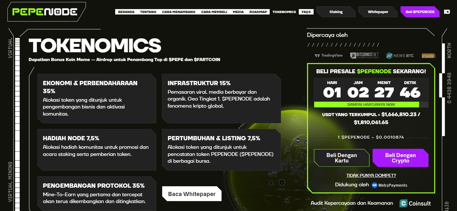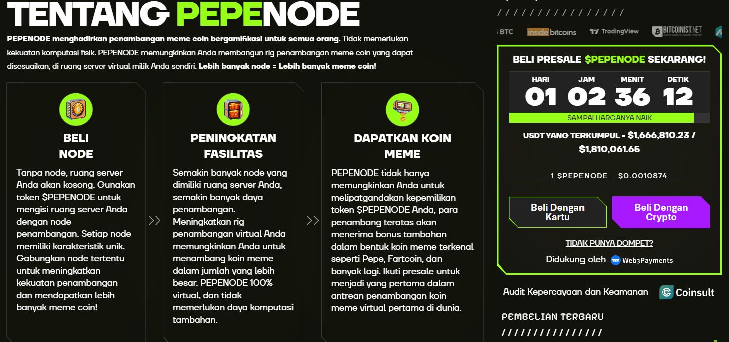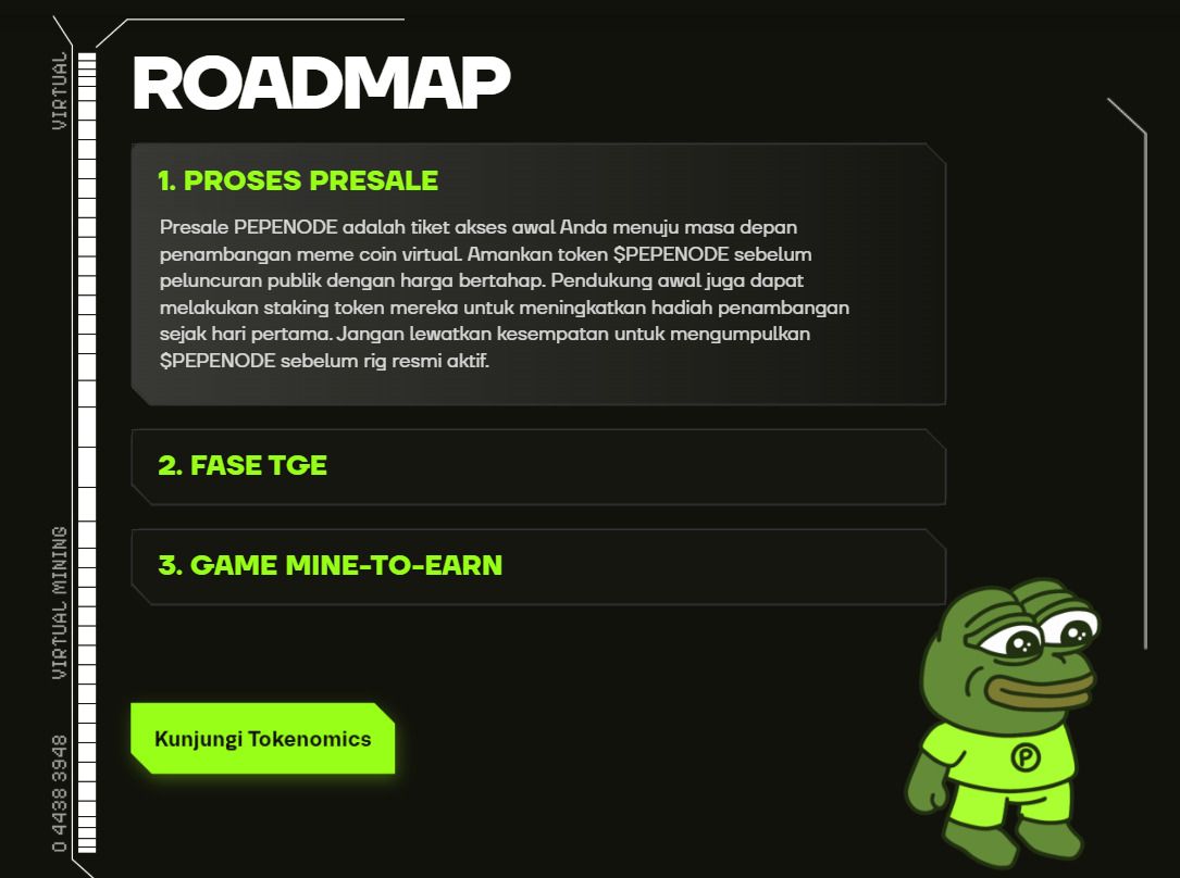 該項(xiàng)目背后的“迷因幣”現(xiàn)象也日益吸引公眾關(guān)注。據(jù)Liputan6報(bào)道,迷因幣因其價(jià)格親民、擁有龐大的社區(qū)支持以及病毒式傳播效應(yīng)引發(fā)的資產(chǎn)價(jià)值飆升而迅速走紅。這些社會(huì)因素增強(qiáng)了像 PEPENODE 這樣兼具娛樂性和金融潛力的項(xiàng)目的吸引力。