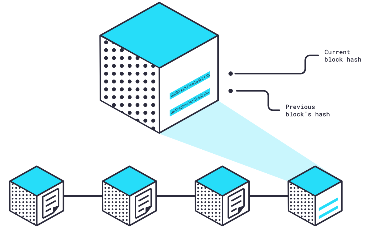 現(xiàn)在,我們的區(qū)塊包含代表當(dāng)前區(qū)塊所有交易的哈希值,以及代表前一個(gè)區(qū)塊所有交易的哈希值。這就是“區(qū)塊鏈”中“鏈”的形成方式。如果之前任何一個(gè)區(qū)塊中的單個(gè)字節(jié)數(shù)據(jù)發(fā)生改變,都會(huì)導(dǎo)致所有后續(xù)區(qū)塊失效,因?yàn)橹竺總€(gè)區(qū)塊的哈希值都會(huì)改變,從而破壞區(qū)塊鏈。