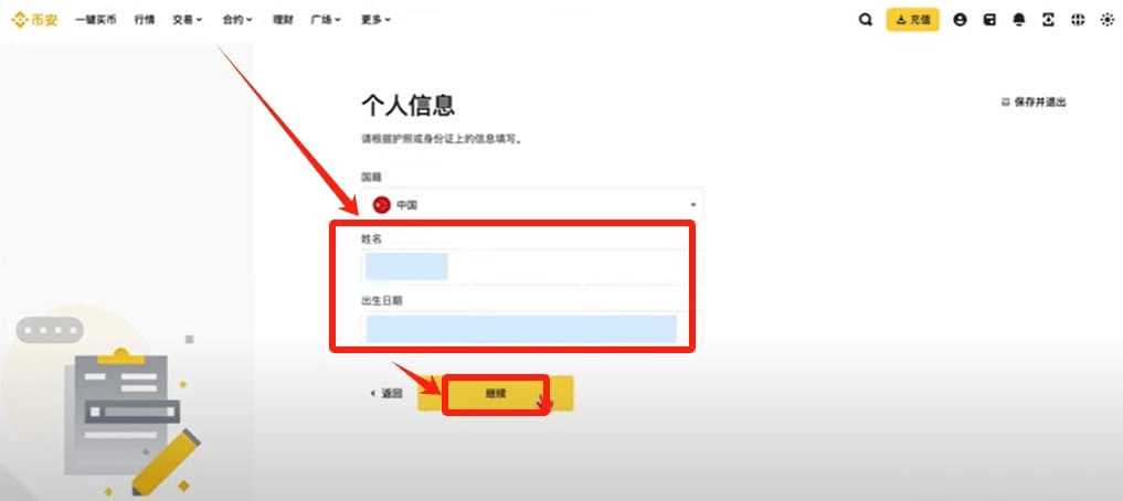 接下來就來到了身份認(rèn)證環(huán)節(jié),也就是我們常說的KYC。首先是居住國家和地區(qū),根據(jù)自己的實際情況如實選擇就可以了。點擊繼續(xù)。