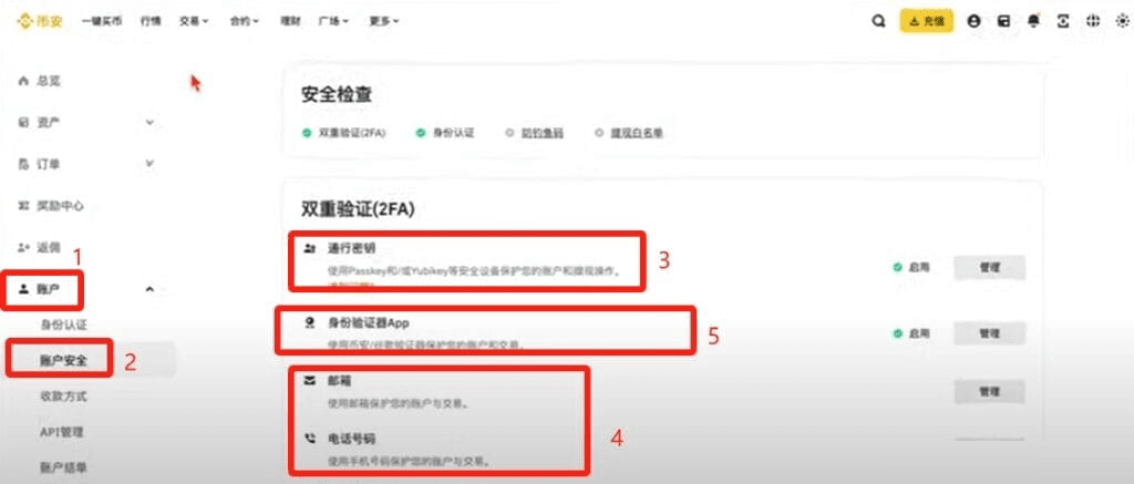 • 開啟雙因素認(rèn)證(2FA):建議使用谷歌驗證器或手機(jī)短信驗證,增加賬戶的保護(hù)。