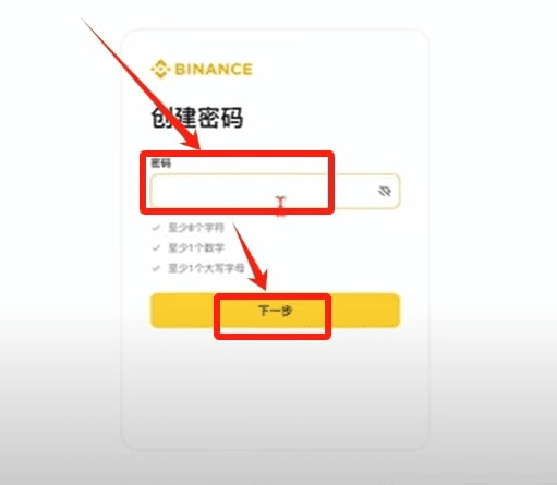 確認(rèn)好之后他就自動跳轉(zhuǎn)到了創(chuàng)建密碼的頁面。這里的密碼有三個要求,至少8個字符、至少1個數(shù)字、至少1個大寫字母。我們就按照它的要求設(shè)置一個高強(qiáng)度的密碼,點擊下一步。