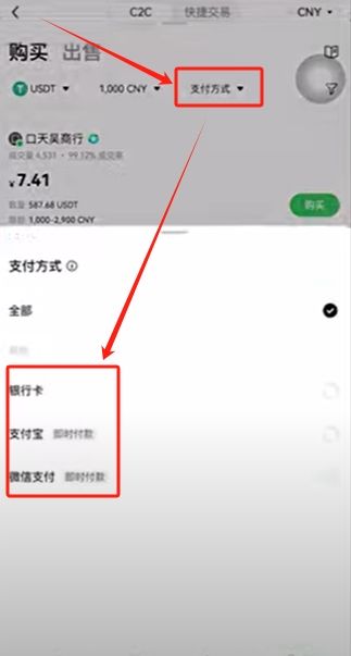 右邊的支付方式我們再點一下,可以篩選你要選擇的支付方式。銀行卡、支付寶還是微信。