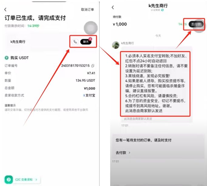 很多人在這一步也會擔心給對方轉賬之后,他收到了我的錢,不給我放USDT怎么辦?其實這點大家是不用擔心的。因為剛剛我們演示的歐易C2C交易的原理里面已經說了,如果這個幣他不放給你,就還是在平臺那里壓著,并不是在廣告方那里壓著的。我們就可以拿著支付寶的支付記錄去找歐易客服進行申訴。就能夠把這筆我們應該得到的USDT拿到我們自己的手中。