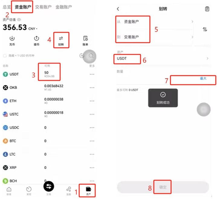 點擊【劃轉】,劃轉的方向從資金賬戶劃轉到交易賬戶,幣種USDT,數量最大,點擊【確定】。這樣就劃轉成功了。整個劃轉過程也是不收取手續(xù)費的。大家可以放心的進行劃轉。