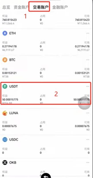 接下來我們點擊進入交易賬戶里面看一下。下方就有我們剛才劃轉進來的50個USDT。