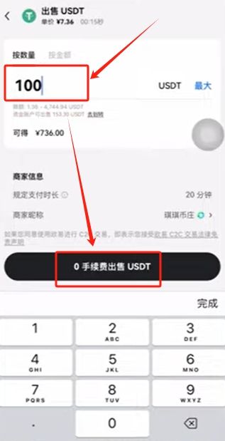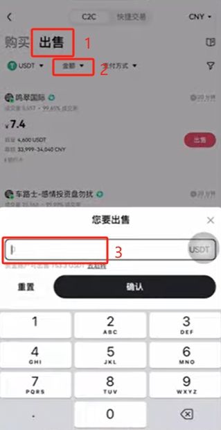 上方選擇【出售】,輸入USDT的數量進行出售就可以了。