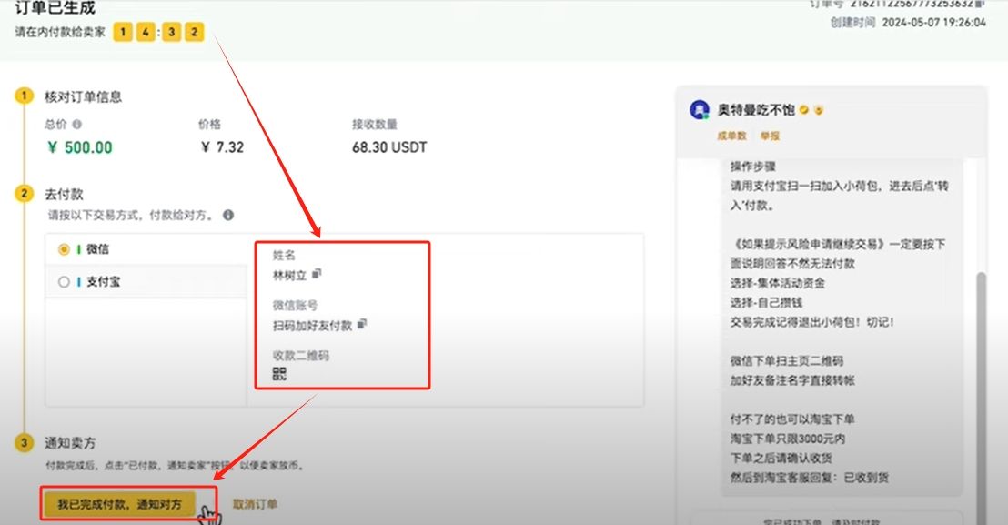 輸入要購買的金額,比如我想購買500塊的USDT,就輸入500,選擇支付方式,這里有支付寶、微信、銀行卡三種支付方式,你習(xí)慣使用哪種方式支付就用哪種方式支付,比如你習(xí)慣用支付寶,就選擇“支付寶”。