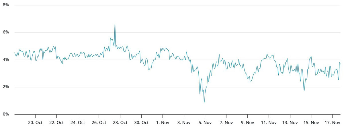 ETH周一跌破3000美元,這一下跌反映了整個行業(yè)范圍內(nèi)的避險轉變,交易者擔憂在從8月份4956美元歷史高點回調(diào)40%后,牛市可能已經(jīng)結束。