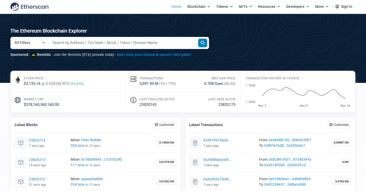 可以把 Etherscan 想成通往以太坊區(qū)塊鏈的一扇窗。它從網(wǎng)絡(luò)上即時(shí)截取數(shù)據(jù),并整理所有歷史交易記錄。平臺(tái)會(huì)以近乎即時(shí)的方式呈現(xiàn)這些信息。你可以在同一個(gè)地方查看交易細(xì)節(jié)、智能合約、相關(guān)費(fèi)用,也能追蹤錢包余額,了解用戶如何與去中心化應(yīng)用進(jìn)程交互。