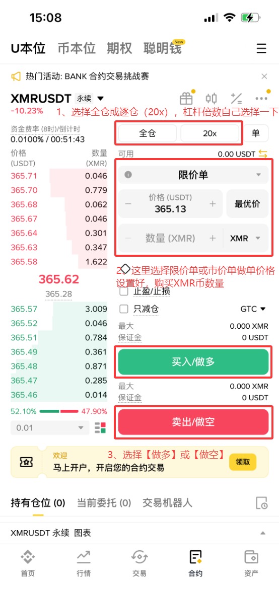 下文是最新XMR幣合約購買流程: