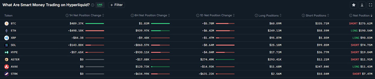 聰明錢交易者在Hyperliquid上的頂級(jí)永續(xù)期貨頭寸。來源:Nansen