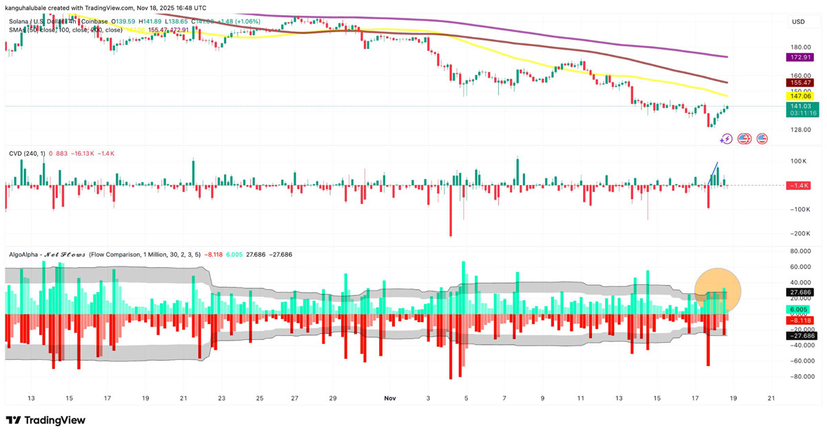 圖表與鏈上數(shù)據(jù)顯示,SOL可能已在130美元筑底。交易者是否應(yīng)期待價(jià)格反彈回升至200美元?