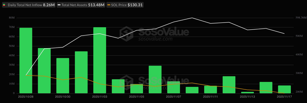現(xiàn)貨Solana ETF流動(dòng)數(shù)據(jù)。來源:SoSoValue