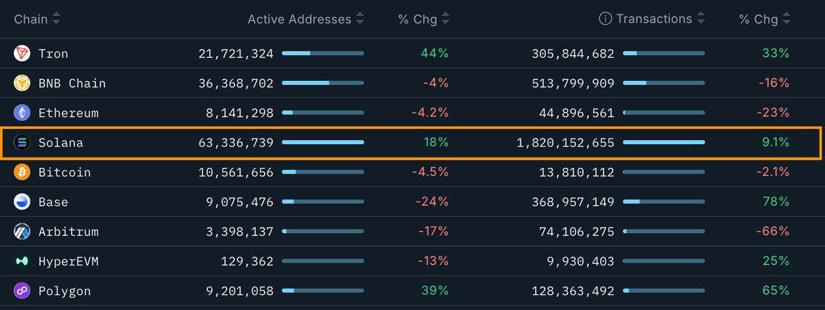 主要區(qū)塊鏈的30天表現(xiàn)。來源:Nansen