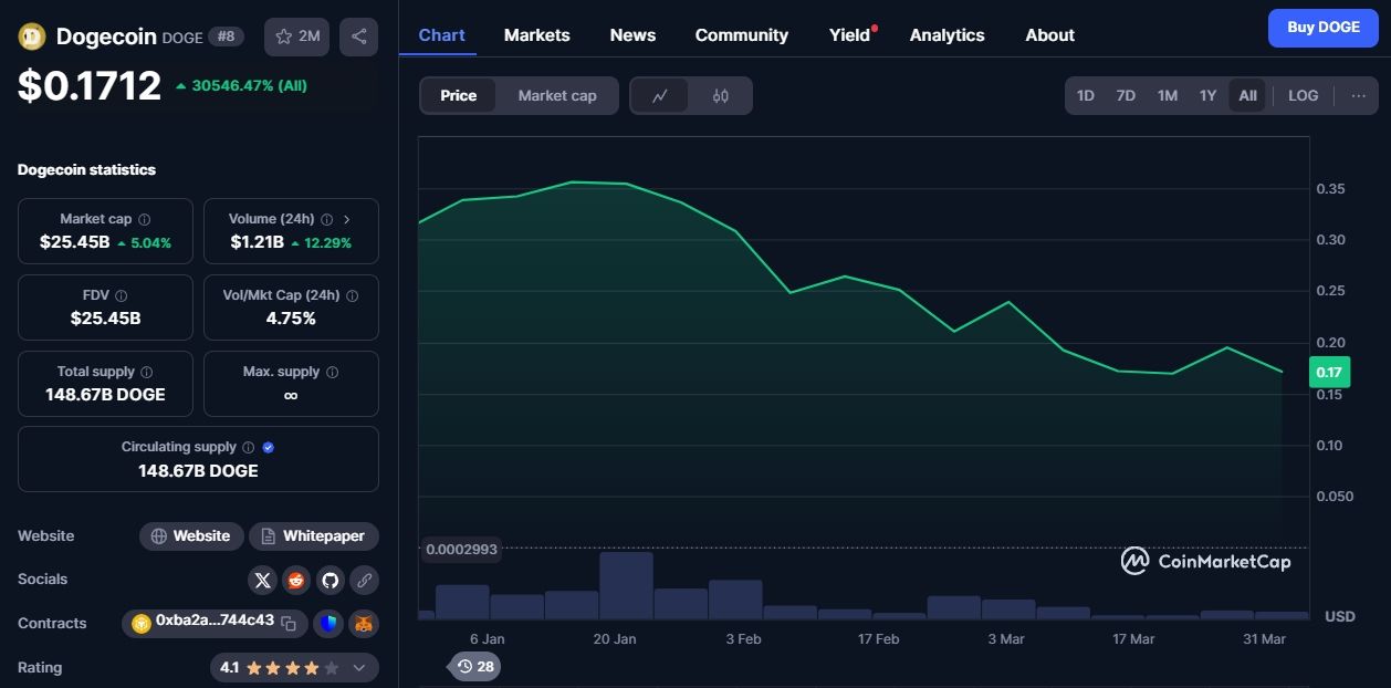 盡管有利好消息,但由于對美國進(jìn)口關(guān)稅和貨幣政策走向的擔(dān)憂,狗狗幣價(jià)格仍在 0.18 美元至 0.22 美元的區(qū)間內(nèi)波動(dòng)。