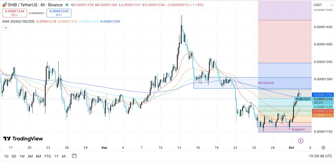 2025.10.3 SHIB近期價格分析:價格預測上漲101%,達到0.000048美元