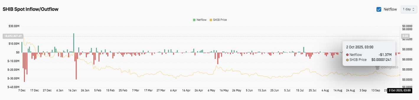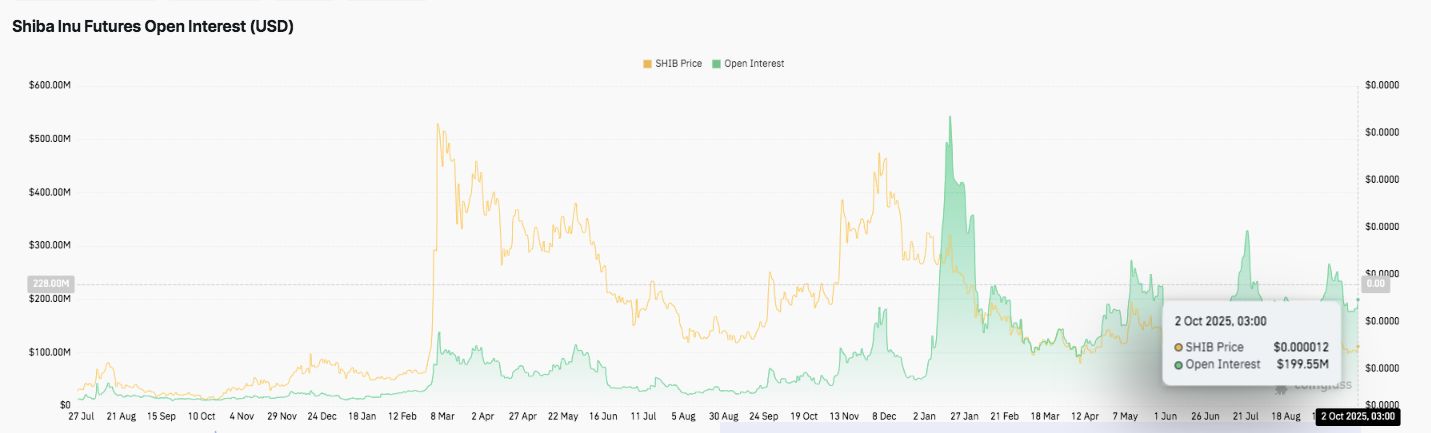 10月2日,SHIB期貨未平倉合約為1.9955億美元,成交量穩(wěn)定但謹慎。這表明投資者仍然活躍,但對大幅回調(diào)保持警惕。