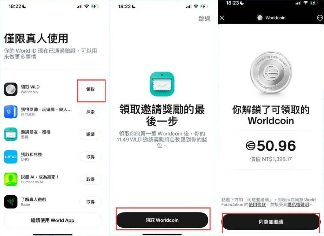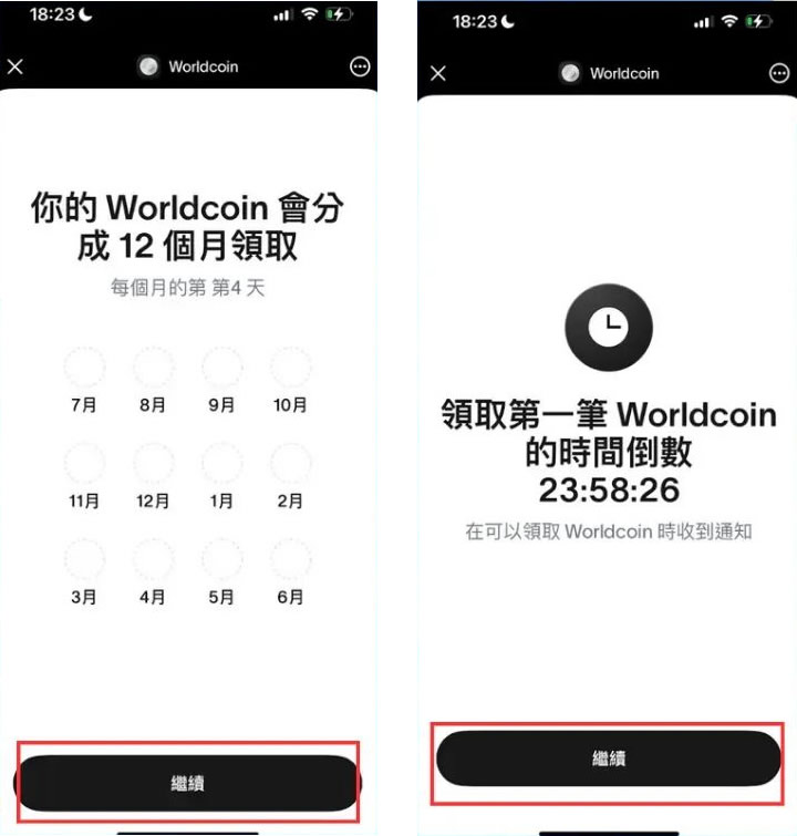 完成驗證會在24 小時內(nèi)取得第一筆WLD 幣,剩余的數(shù)量會分成12 個月領(lǐng)取。