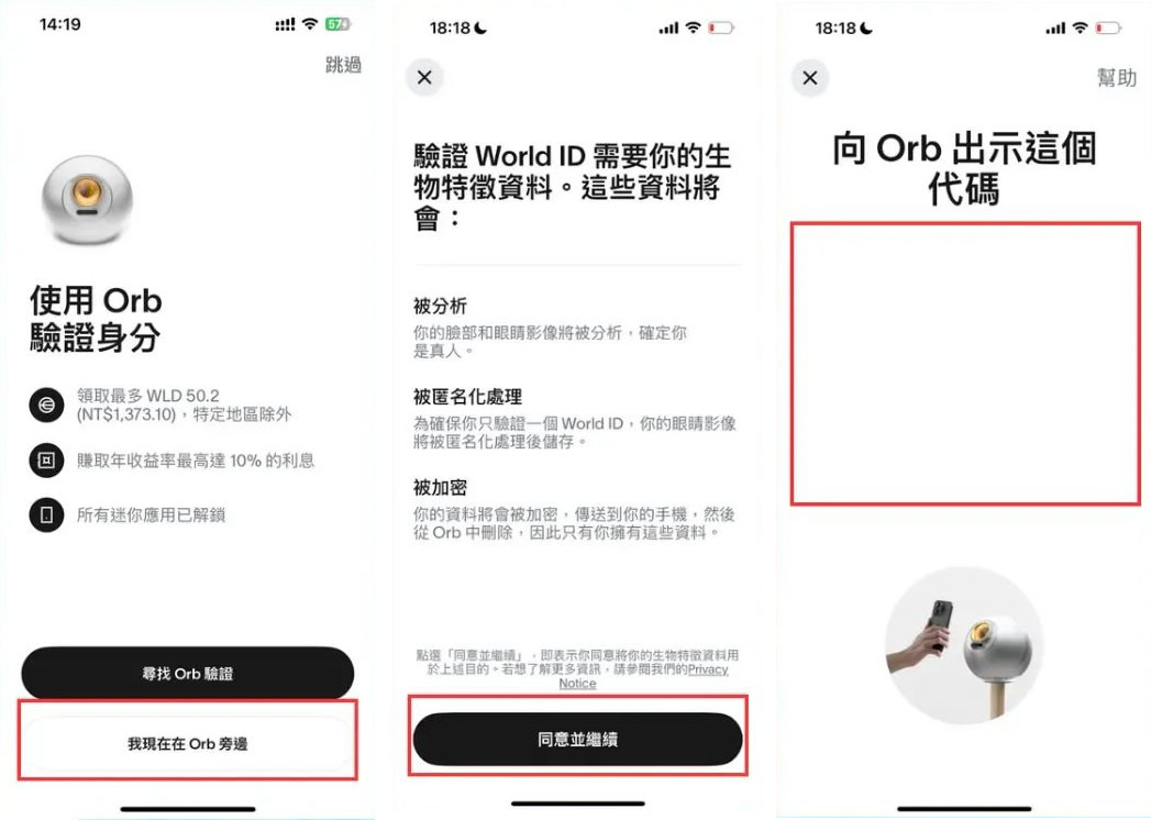 如果你要取得免費的WLD 幣,需要前往有Orb 設(shè)備的地方進行虹膜認(rèn)證,