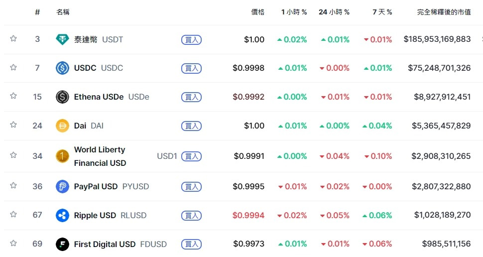 類別穩(wěn)定幣(與美元 1:1 掛鉤)