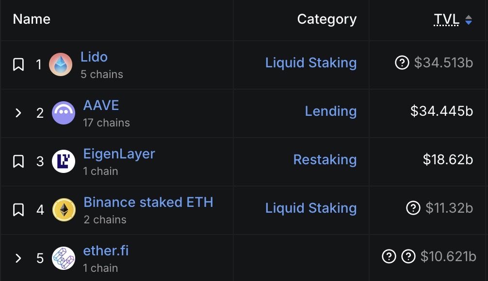 根據Defillama統計,目前AAVE 總鎖倉資金量超過300 億美元,是全球第2 大的DeFi 協議。