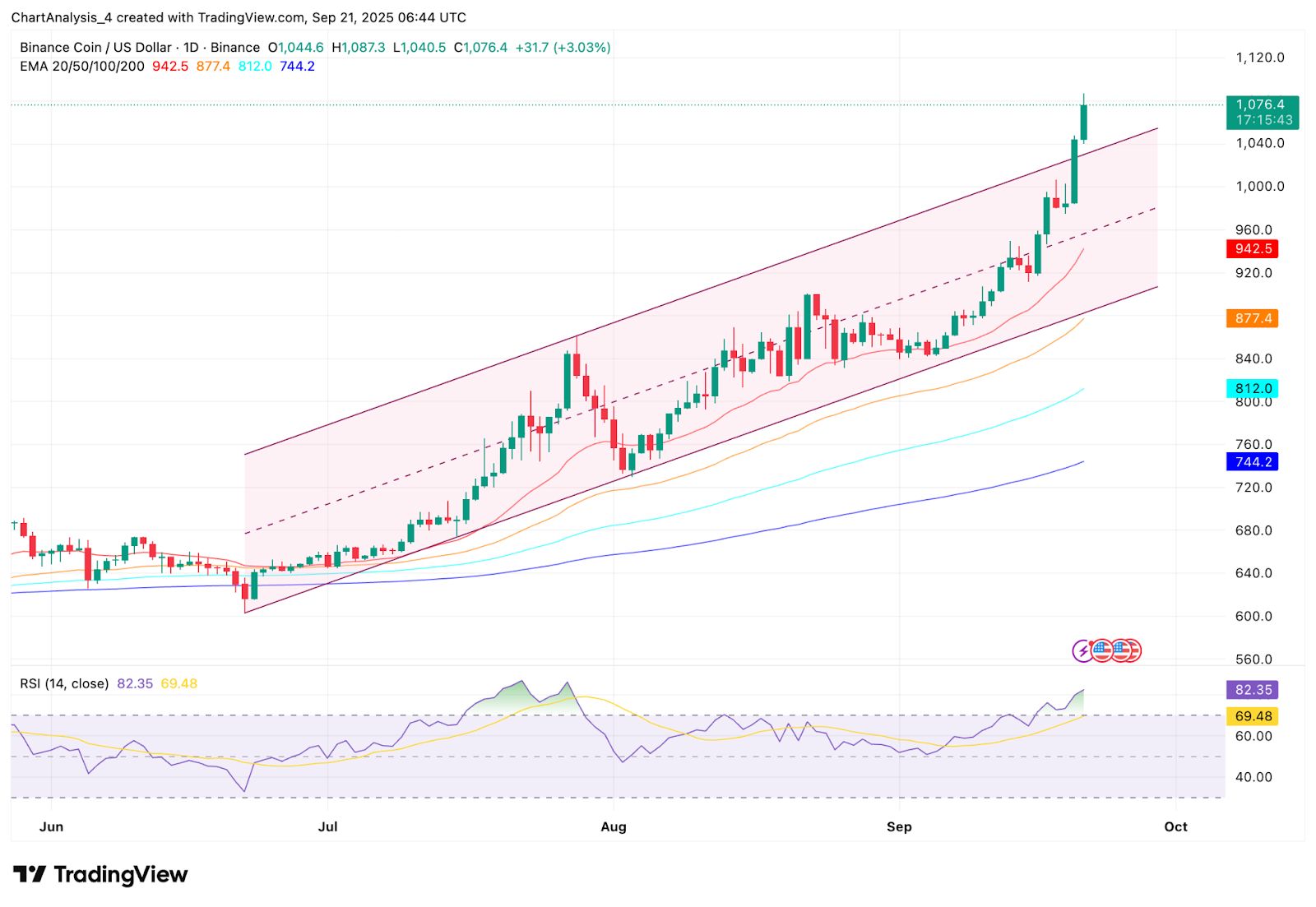 - BNB 在主要 EMA 的強(qiáng)力支撐下維持 1,200 美元以上的看漲趨勢(shì)