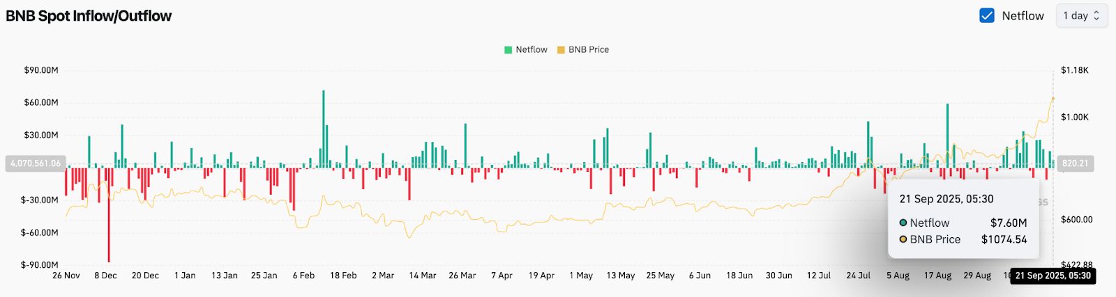 BNB 價(jià)格今日維持在 846 美元附近,此前該價(jià)格經(jīng)歷了強(qiáng)勁反彈,突破了主要結(jié)構(gòu)性阻力位。強(qiáng)勁的衍生品流入和技術(shù)指標(biāo)的看漲走勢(shì)支撐了這一走勢(shì)。市場(chǎng)參與者目前關(guān)注的是,這波漲勢(shì)能否持續(xù),而不會(huì)回調(diào)至關(guān)鍵需求區(qū)域。