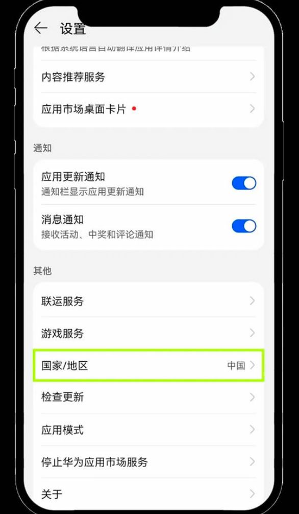 8、在設(shè)置中選擇【國家/地區(qū)】選項。