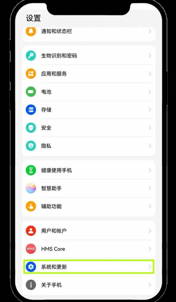 1、方法一:關(guān)閉純凈模式與外部應(yīng)用檢查。首先進入手機【設(shè)置】,然后點擊【系統(tǒng)和更新】。