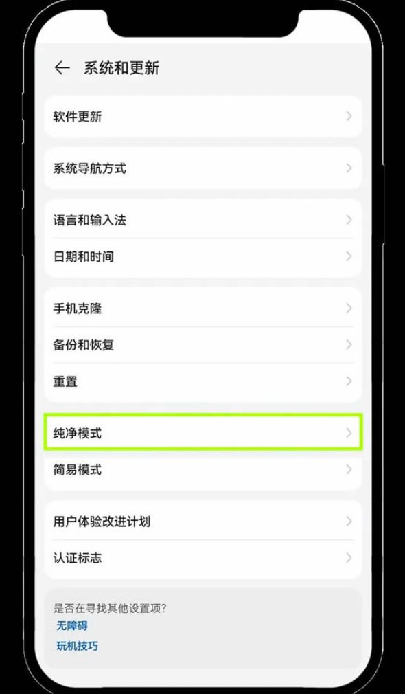 2、在“系統(tǒng)和更新”菜單中,選擇【純凈模式】。