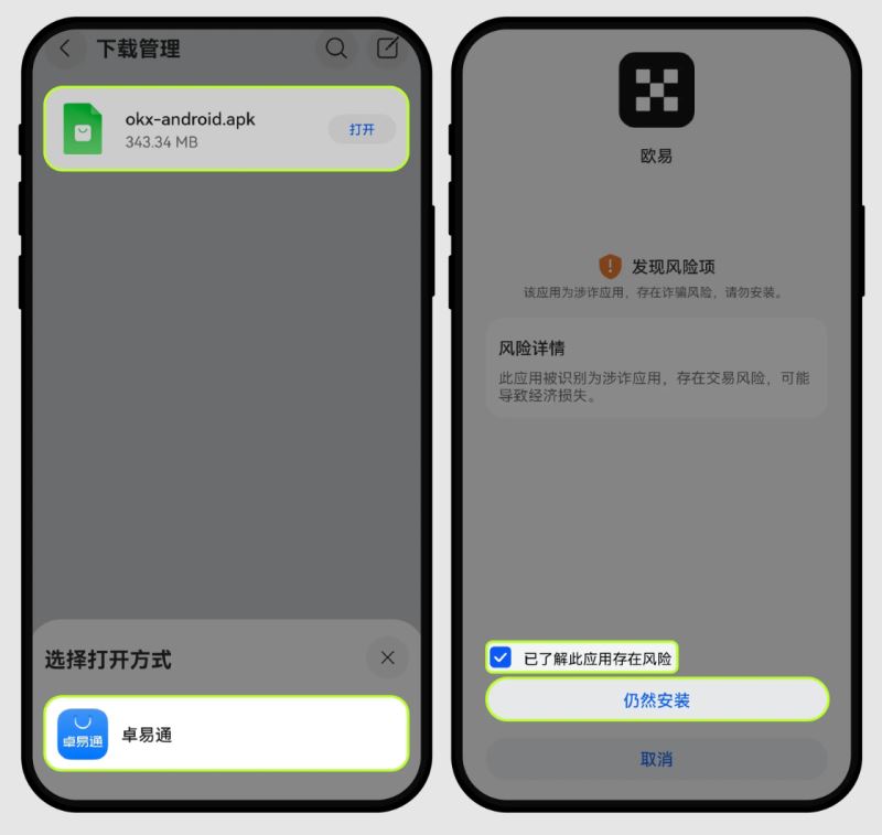 2025華為鴻蒙系統(tǒng)怎么安裝歐易交易所?在安卓手機上安裝歐易(okx)app時,部分用戶可能會遇到系統(tǒng)彈出“安全風(fēng)險”、“病毒風(fēng)險”等提示,導(dǎo)致安裝過程受阻,這通常是由于手機的安全機制所致,下面腳本之家小編給大家詳細介紹鴻蒙系統(tǒng)安裝歐易交易所