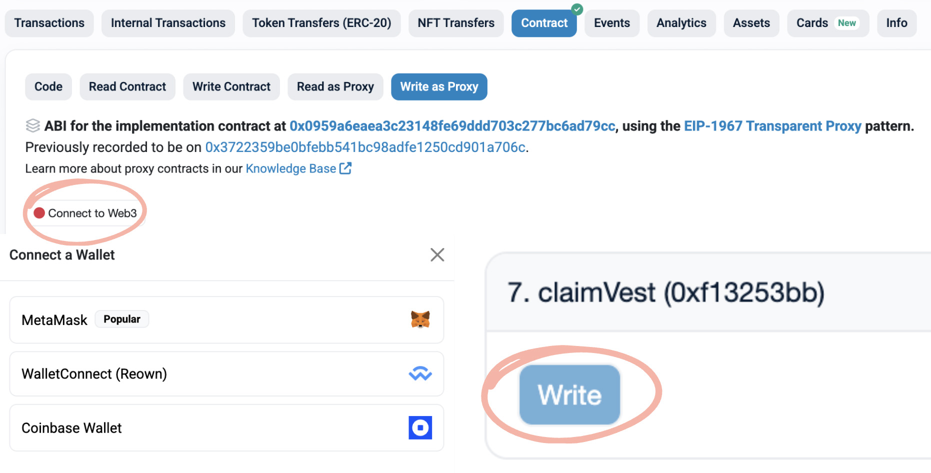 - 點擊「Write」提交交易(提醒:需預(yù)留ETH 作為gas fee)