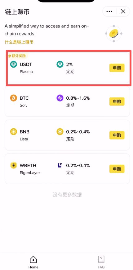 這個是保本賺幣,就是你投入USDT可以每天獲得額外的收益。不過這個USDT是會自動發(fā)送到你的現貨賬戶,因此這些收益沒有辦法再繼續(xù)產生額外的小收益,因此又沒有辦法有復利效應。