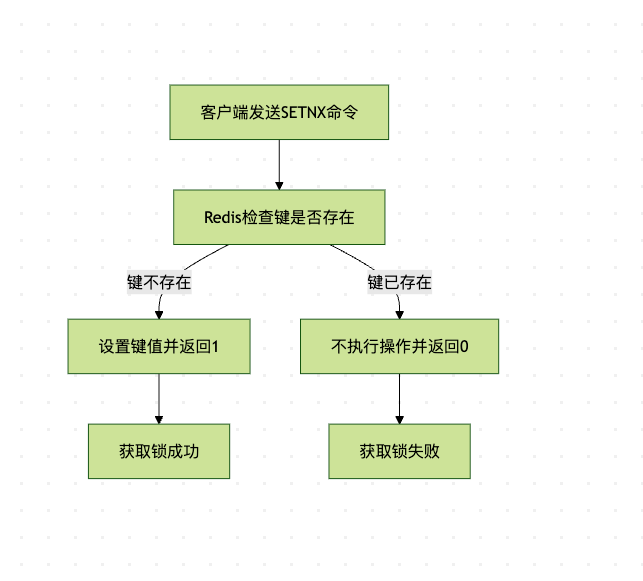 理解了SETNX在分布式鎖中的類比場(chǎng)景后,我們來看看這個(gè)命令在Redis中是如何具體執(zhí)行的。就像餐廳經(jīng)理需要有一套明確的規(guī)則來決定誰可以獲得點(diǎn)菜權(quán)一樣,SETNX也有其特定的執(zhí)行流程。