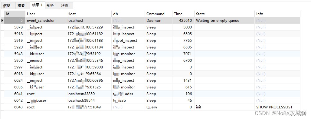 注意: show processlist只顯示前100條 我們可以通過(guò)show full processlist 顯示全部。