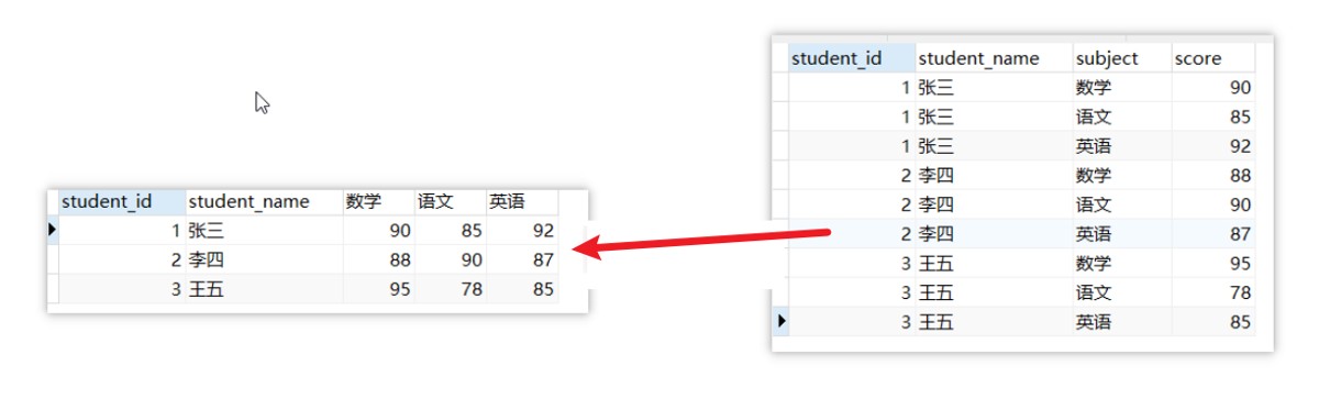 (3, '王五', '英語', 85);2. 行轉(zhuǎn)列實(shí)現(xiàn)方法